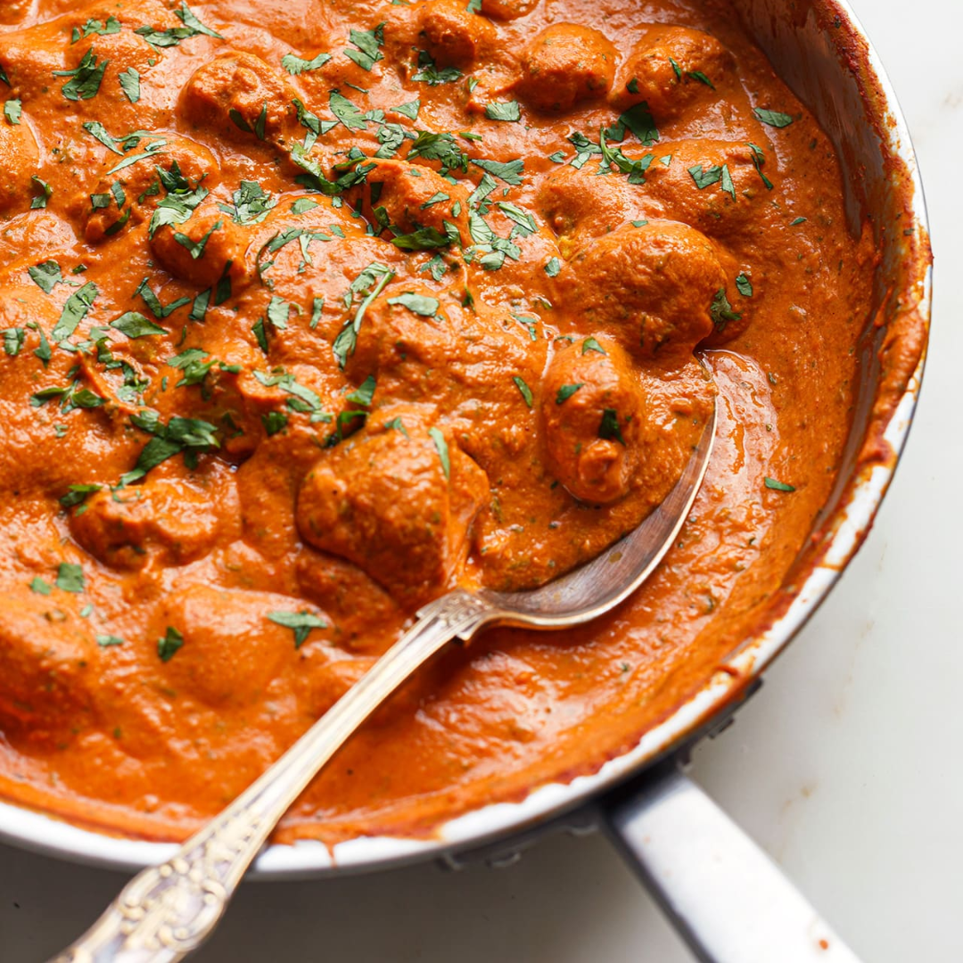 Our take on the classic butter chicken. A rich and creamy tomato-coconut based curry sauce with organic chickpeas.