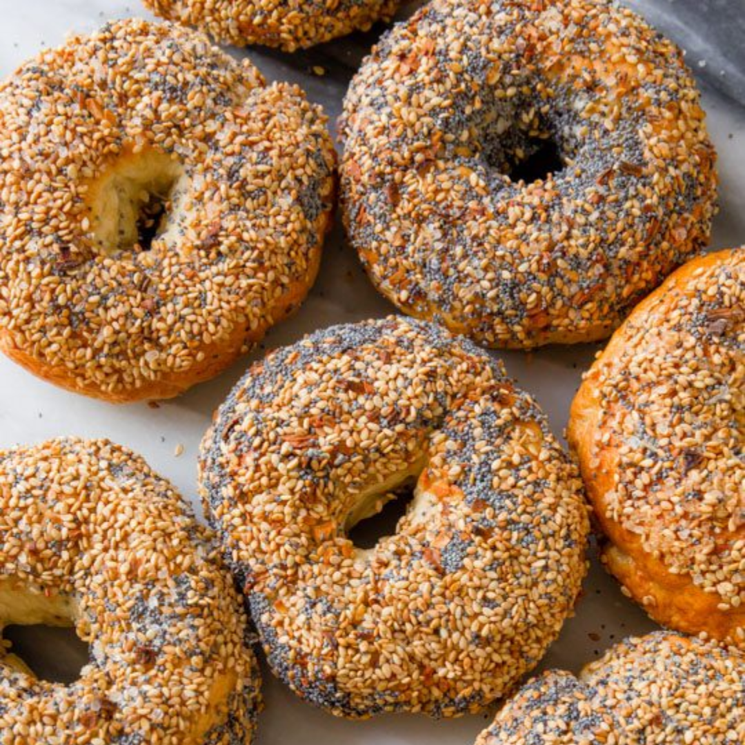 4 fresh baked bagels from Poppy's in Waterloo, and 250 mL of our house-made herb cream cheese.