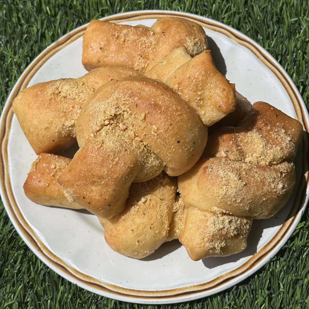 Handmade vegan parmesan garlic knots made by Bad Attitude Bread in Toronto.