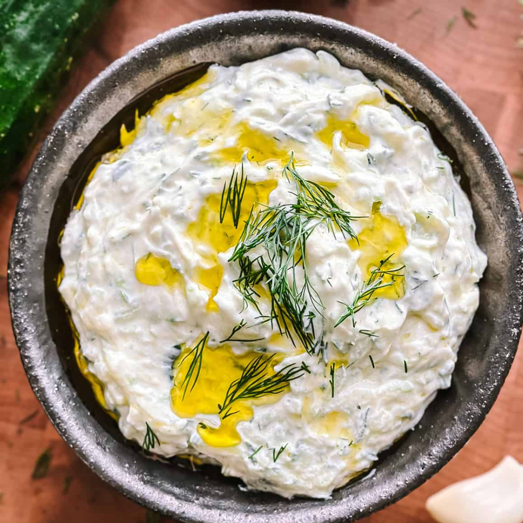 Ingredients: Cashews, olive oil, cucumber, lemon juice, garlic, sea salt, spices.